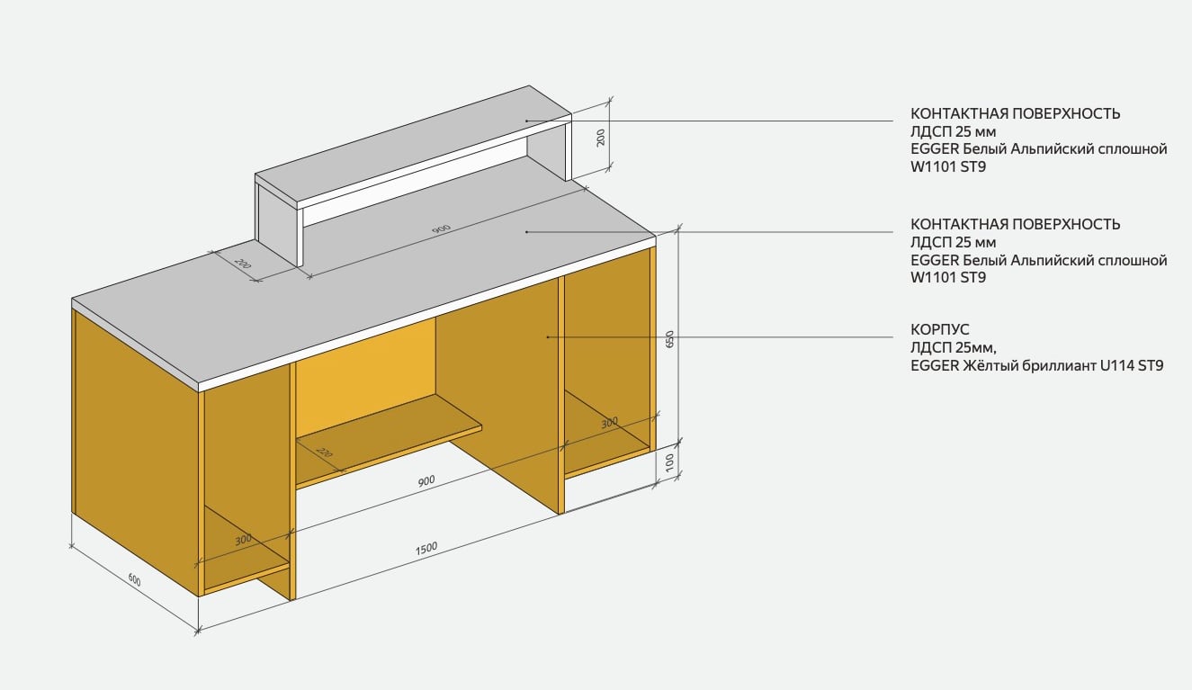 Кассовая стойка 1500 × 600 × 950 мм