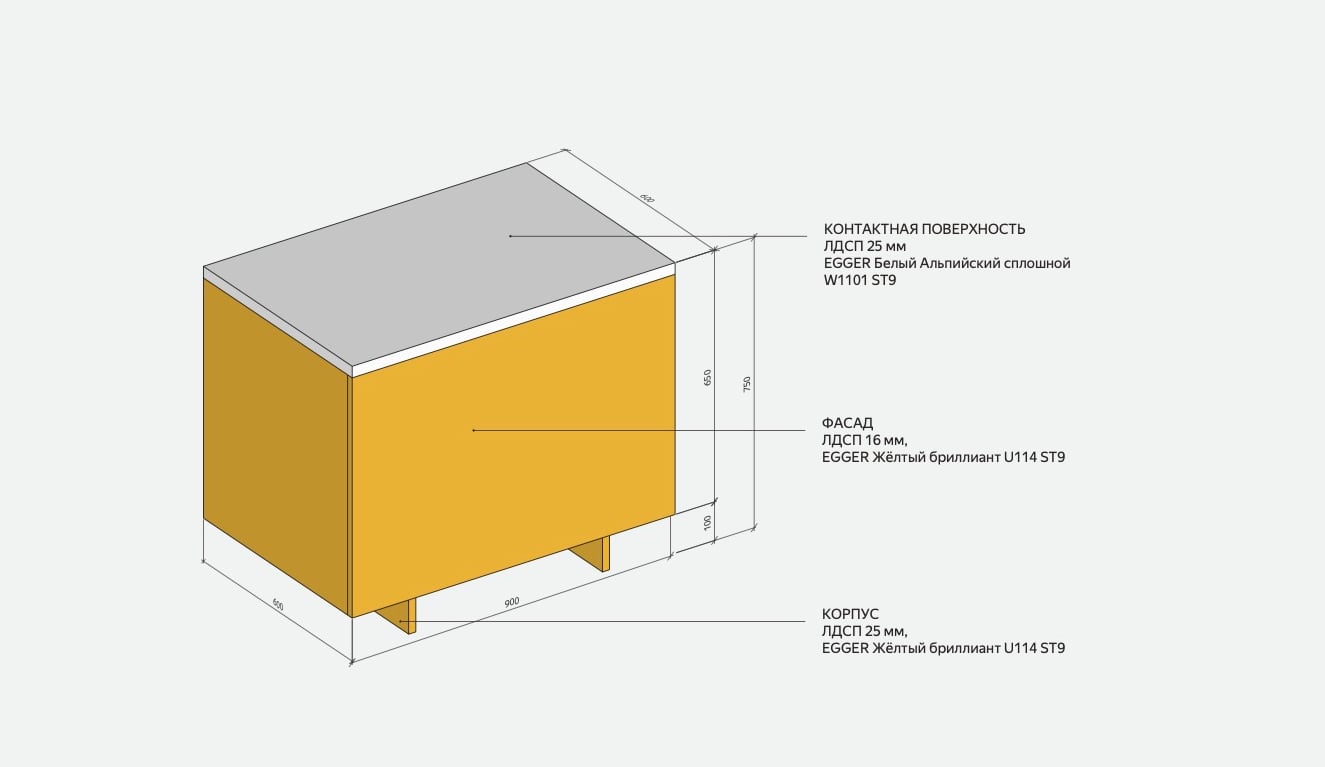 Дополнительная тумба 900 × 600 × 700 мм