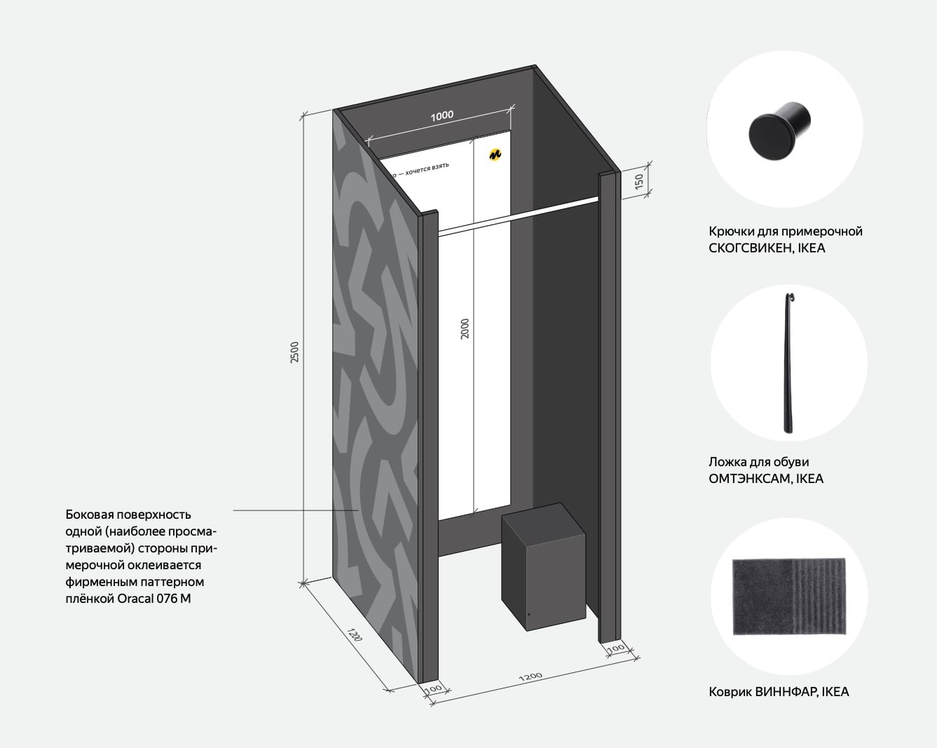 Примерочная 1200 × 1200 × 2500 мм